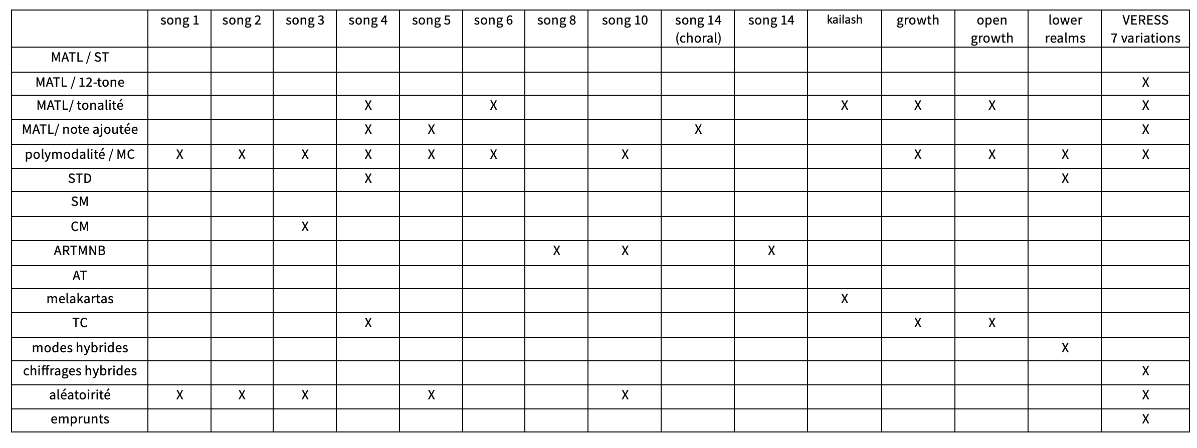 MC = modes complémentaires / ARTMNB = accords à renversements transposés sur une même note de basse / AT = accords tournants/